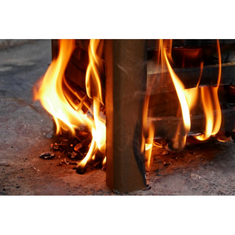 Das Holzgestell brennt komplett ab, aufgrund der hohen Hitze bleibt nur wenig Asche übrig. Sauberes und effizientes Grillen